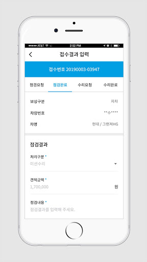 오토미션 사고수리접수, 기술자문 문의, 수리신청, 수리결과 확인, 잔존물매각 등 전과정을 모바일상에서 진행해드립니다.