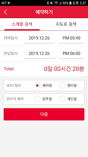 – 세차/정비 내역 조회, 예약 등 차량관리용 기능