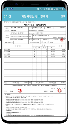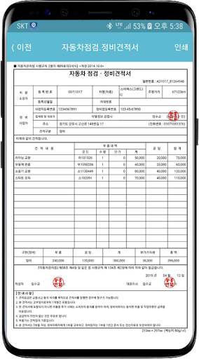 스마트 케어 (자동자 점검정비 명세서, 견적서)