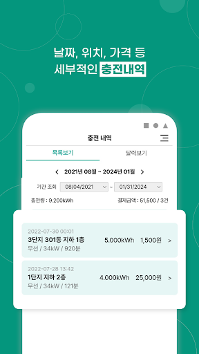 충전 내역을 확인하여 전기차 충전 내역 추이와 결제 내역 등을 확인 할 수