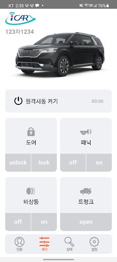 차량 제어 – 차량의 시동/끄기, 문 열림/잠김, 비상등/경고음 켜기, 후열, 저전압 시동, 후진 경고등, 충격 감지 등의 서비스를 원격으로 제어하고 확인할 수 있도록 서비스 제공.