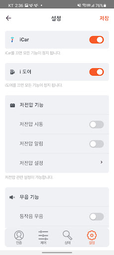– 어플리케이션 내의 설정 화면에서 원격시동, 후열, 저전압시동 등의 시간을 조정할 수 있습니다.