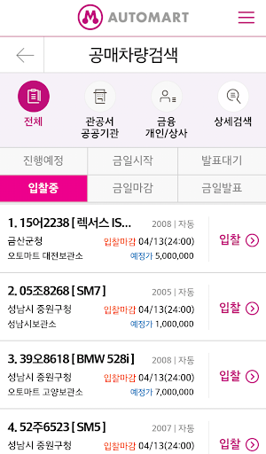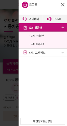 오토마트 모바일 공매 서비스는 스마트 기기에서 공매차량의 검색 및 정보조회에서부터 입찰참여 및 입찰결과 확인까지의 공매절차 서비스를 제공합니다.