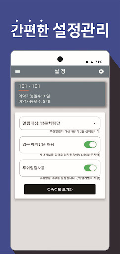 월사용량 조회 그리고 방문예약에 필요한 기타 주차장설정등의 작업을 수행할수 있습니다.