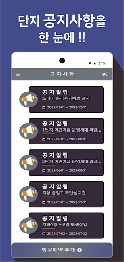 입주민은 앱을 통하여 공지사항 및 방문차량의 관리및 출입기록조회와