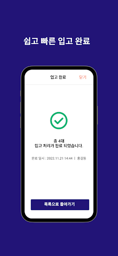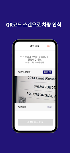 QR코드 스캔을 통한 입고 차량 확인 및 일괄 입고 완료 처리 지원.