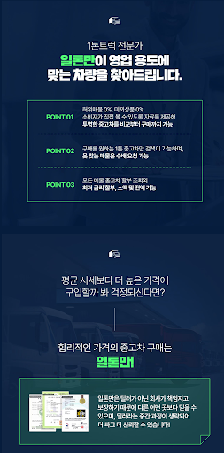 일톤만은 전문적인만큼 일톤트럭의 가치를 제대로 알아봐 차량의 가격만이 아닌 차량의 가치를 통해 보다 좋은 가격으로 차량을 매입하고 있으니 내차 팔 때도 역시 일톤만을 기억해 주시기 바랍니다.