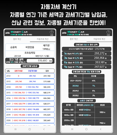 자동차 할부계산기, 자동차세 계산기 -Money Car