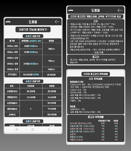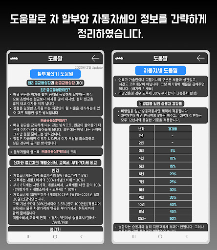 자동차 할부계산과 자동차세에 대한 도움말을 제공합니다.