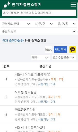 전국 전기차충전소 주소 전화번호 영업시간 충전기타입 충전기상태 후기 정보를 제공합니다.