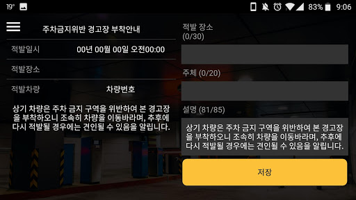 스마트폰으로 주차된 차량번호판을 찍으면, 차량번호를 인식하여 입주민차량 여부와 입차시각을 확인할 수 있으며, 주차위반스티커를 부착할 수 있다.