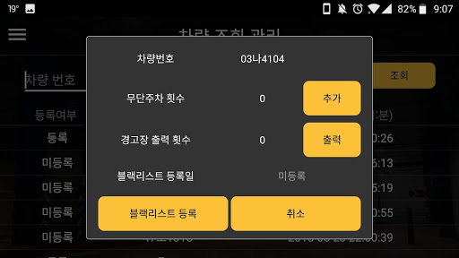 우리 아파트에 상습적으로 무단주차를 해왔다면 이것을 블랙리스트로 등록할 수 있습니다. 물론, 이렇게 블랙리스트로 등록된 차량도 전국에서 이 앱을 사용하는 아파트단지에서는 모두 확인이 됩니다. 즉, 어떤 아파트에서 몇차례 무단주차를 해서 블랙리스트로 등록되었다는 사실 등입니다.