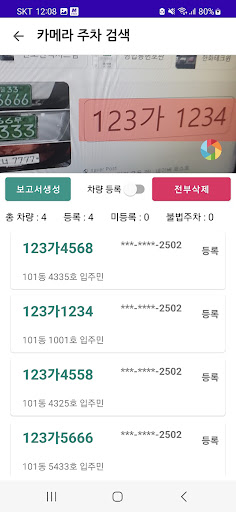 3. 미등록, 불법주차를 체크후 보고서 작성