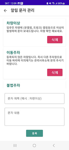 4. 불법주차, 차량이상, 미등록 차량이 주차할경우 알림톡으로 메세지를 전달합니다.