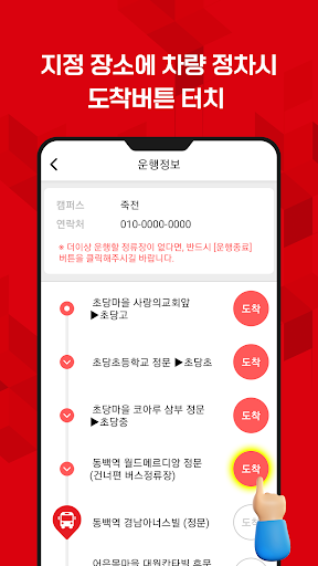 지트 차량기사앱을 통해 학부모앱, 관리자앱의 차량 정보 기능에 차량 정보를 업데이트 할 수 있습니다.