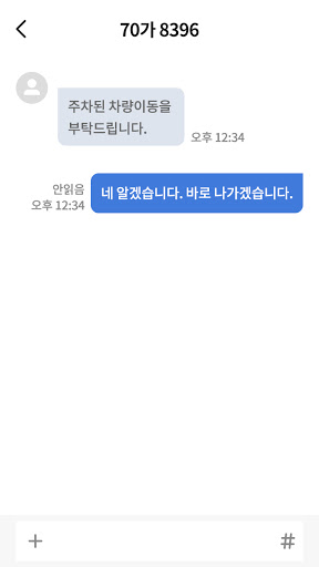 차량번호를 통하여 차번호로 주차이동 메세지 전달