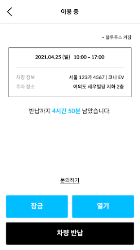 주차 장소에 차량을 주차 후, 반납 버튼만 누르면 쉽게 반납 가능합니다.
