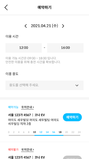 예약 시간을 설정하시면, 선택하신 시간에 예약이 가능한 차량들을 안내해드립니다.