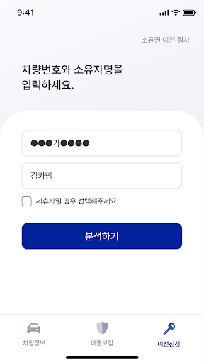 카방의 온라인 이전등록 신청 앱은