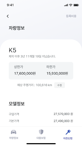 카방 앱 이용시 차량시세, 사고이력, 제원분석, 이전등록 비용 계산까지 가능, 관공서 방문이나 서류준비 없이 누구나 쉽게 365일 24시간 이전등록 신청을 지원하고 있습니다.