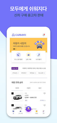 카사요는 국내 최대 네트워크 인프라를 사용하는 유일한 플랫폼으로 신차 구매(장기 렌트/리스, 일시불, 할부)와 내 차 팔기, 자동차 금융, 자동차 다이렉트 보험 등 자동차 관련 모든 서비스를 한 번에 끝낼 수 있어요.