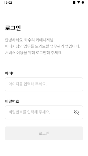 카수리의 카매니저가 고객 여러분을 빠르고 정확하게 찾아가 서비스 해드릴 수 있도록 서포트하는 카수리 카매니저 전용 어플리케이션입니다.