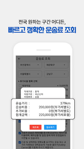 카콜매니저 화주용 앱을 통하여 전국 차량운송(탁송) 표준운송료 조회하고 접수하여 배차 및 운송을 의뢰하는 앱입니다.