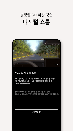 – 생동감 넘치는 3D 디지털 쇼룸으로 생생하게 차량을 경험할 수 있습니다.