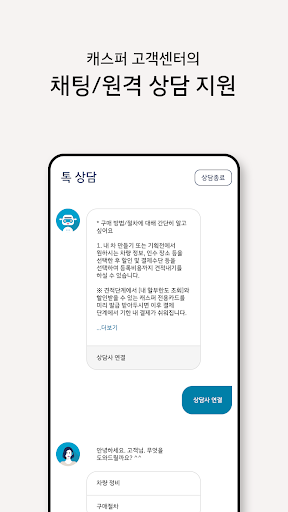 – ARS 구매 상담, 1:1 문의, 채팅 상담, 원격 지원 등 캐스퍼 온라인 구매를 위한 상담 서비스를 이용할 수 있습니다.