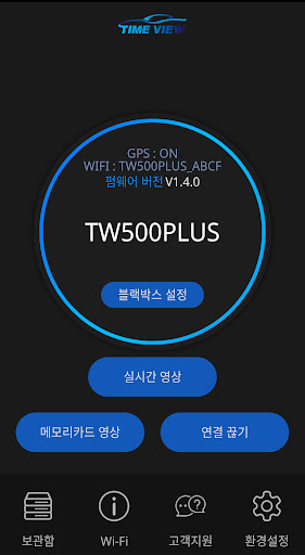 타임뷰 TW500+, TW500+2 블랙박스와 Wifi를 통해 무선으로 연결합니다.
