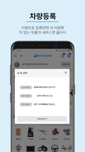 파트존에 차량을 등록하면 각종 내 차 호환부품과 정비 서비스를 한 눈에 볼 수 있습니다.