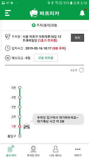 스마트 폰으로 미리 출차예약 신청해보세요.