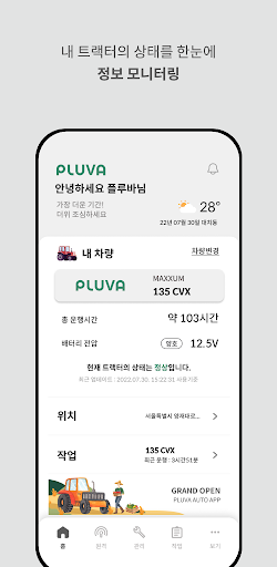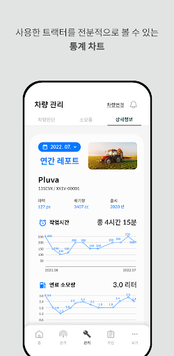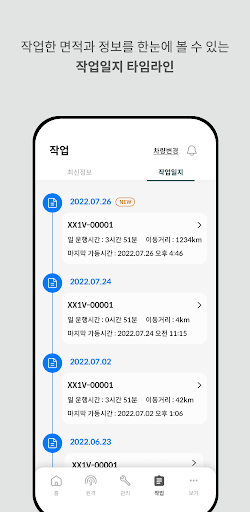 작업일지를 제공하여 연비 등 유용한 정보들을 실시간으로 확인할 수 있으며, 차량 전복 사고가 발생하면 자동으로 SOS 알림을 보내드립니다.