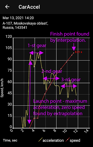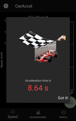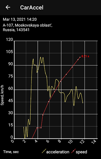 Measure your vehicle acceleration time up to 100 km/h (0-60 mph) with this cool speed vehicle meter and compare it to documents.