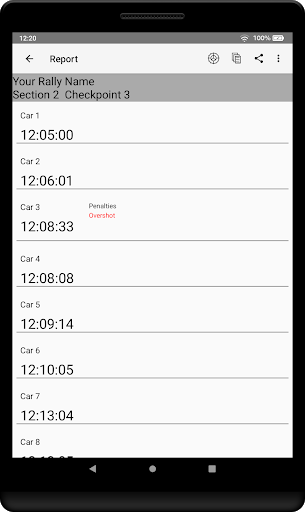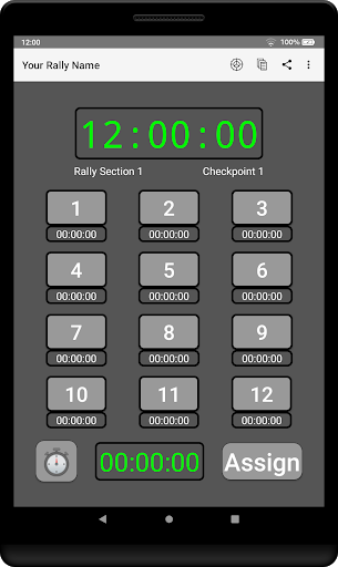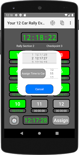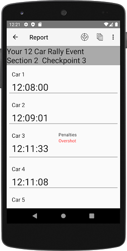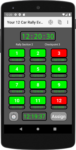 The 12 Car Rally Timer app is for use by organisers and marshals of small rally events of up to 12 vehicles (known as 12-Car Rallies in the UK) which involve any form of timed activity.