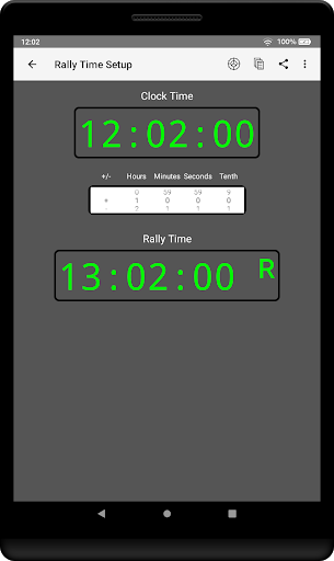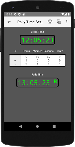 You can use the standard device time, or adjust it for Rally Time.