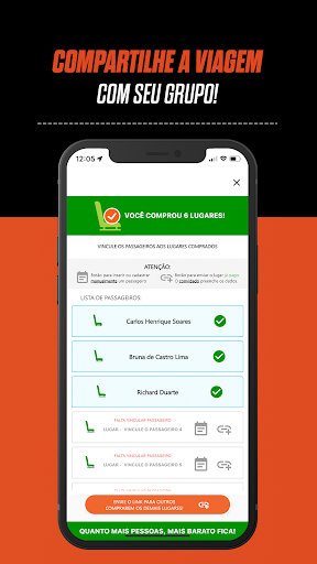 COMPARTILHE COM SEU GRUPO: compartilhe a contratação com os que devem estar no veículo e todos poderão acompanhar os detalhes via aplicativo.