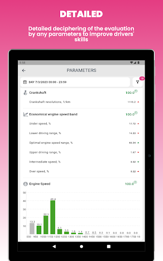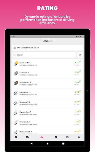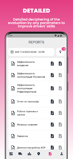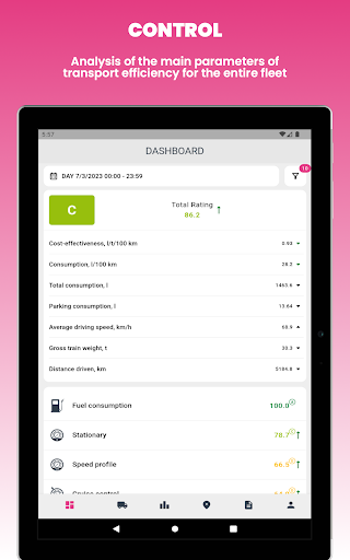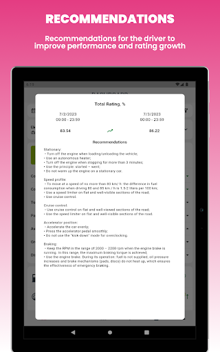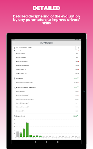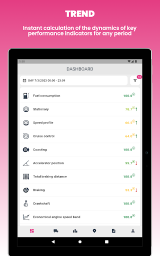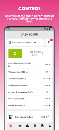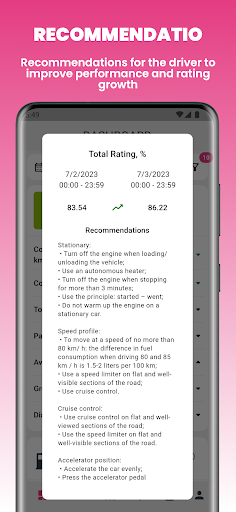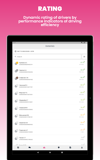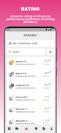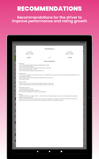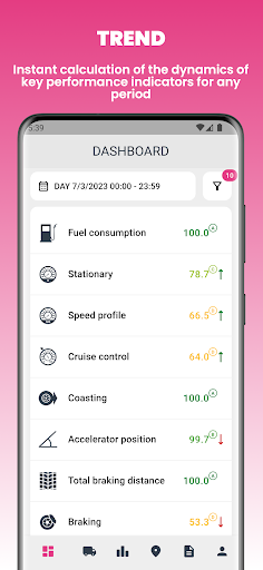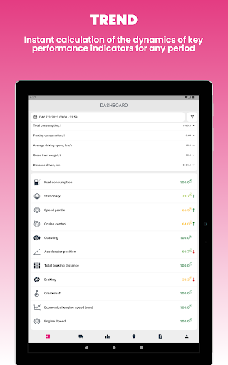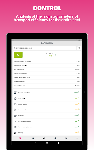 – view your own indicators in the driving efficiency assessment system at any time for any period, including when driving several vehicles