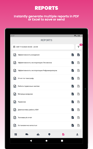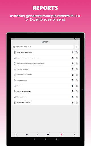 – the ability to build, upload and send formalized reports from the system for various tasks – the overall and personal driving efficiency, the mode of work and rest of drivers, the state of the fleet of refrigeration equipment and many others