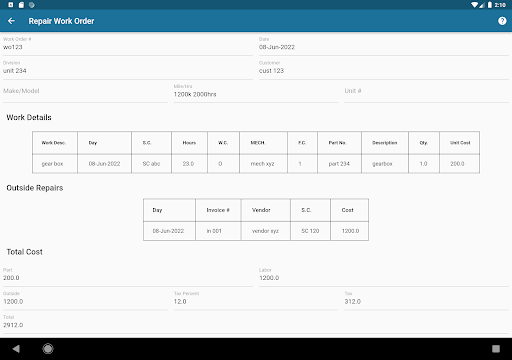 This App is the mechanic’s tool to view which vehicles are due for servicing, write up work orders, and view and clear DTCs directly from a tablet.