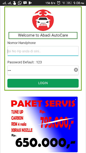 Sistem Android Bengkel Abadi AutoCare , Dengan aplikasi ini, Anda bisa membuat booking service,cuci atau ganti oli kendaraan anda di Bengkel Abadi Autocare dan juga anda bisa melihat history service kendaraan anda dan melihat promo.