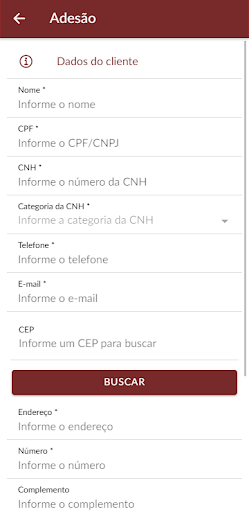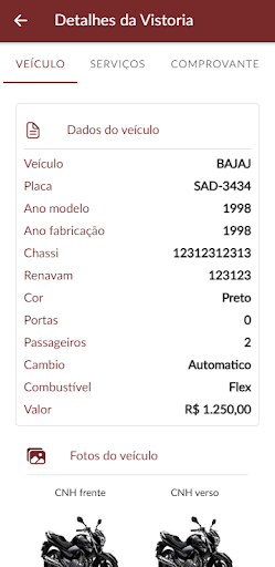 Cadastro do veículo.