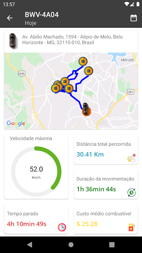 Você poderá ver aonde estão todos os seu veículos no mapa, e poderá consulta o trajeto diário, e visualizar todos os locais que seu veículo esteve no dia.