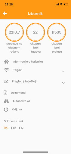 Vozi bez zaustavljanja: online dopuna korisničkih računa, provjera stanja računa, pregled prolaza, upravljanje korisničkim računom.