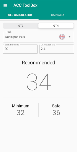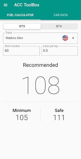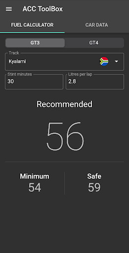Enter a car class, track, and stint length to get a estimate of how much fuel to add to the tank.