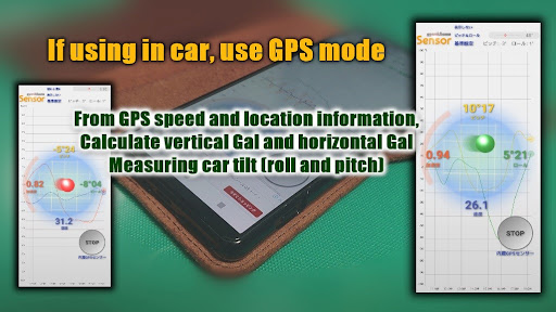 Using the built-in sensor of the smartphone, the vertical acceleration, horizontal acceleration, front-back tilt (pitch), and left-right tilt (roll) of a vehicle such as a car are displayed in a graph. It is an application. The usage is here .. The items to be displayed can be selected arbitrarily, and the start and end of measurement are operated with the buttons. After measurement, check the graph by pinching.