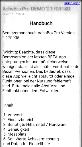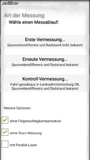 Diese App ist nur für einen qualifizierten Personenkreis mit Fachwissen im Bereich Kfz-Technik, -Fahrwerk und -Achsvermessung bestimmt. Ohne Fachwissen ist eine Achsvermessung mit dieser App NICHT möglich!