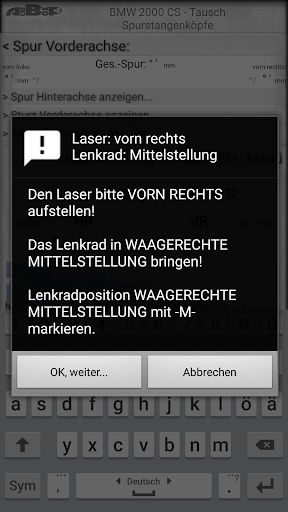 Diese App setzt Kenntnisse im Bereich Fahrwerk und Achsvermessung voraus!