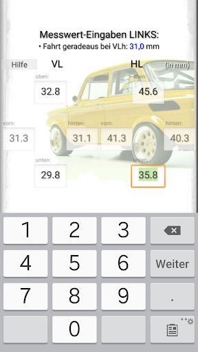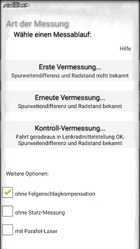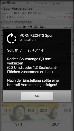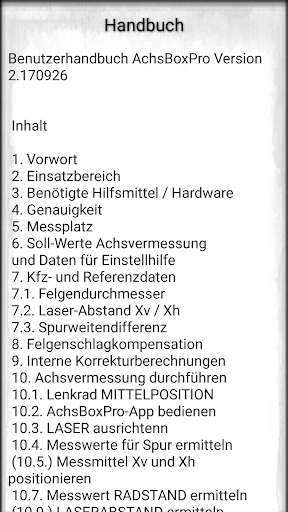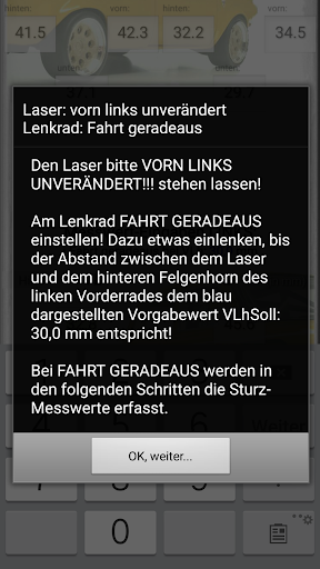 This app is only intended for a qualified group of people with specialist knowledge in the field of vehicle technology, chassis and wheel alignment. Wheel alignment with this app is NOT possible without specialist knowledge!