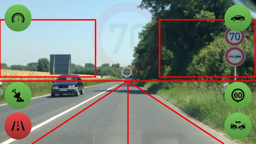 * detects and monitors speed limits based on the built-in camera and known locations